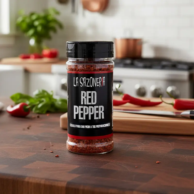 El Red Pepper de La Sazonería es un sazonador picante gourmet diseñado para realzar tus recetas con un picor equilibrado y lleno de aroma. Esta mezcla de especias es ideal para carnes, pastas, pizzas, salsas y verduras, aportando intensidad sin opacar los sabores principales. Perfecto para quienes buscan un condimento versátil que entregue carácter y profundidad a cada preparación. Úsalo en cocina casera o profesional y transforma platos simples en experiencias llenas de sabor.